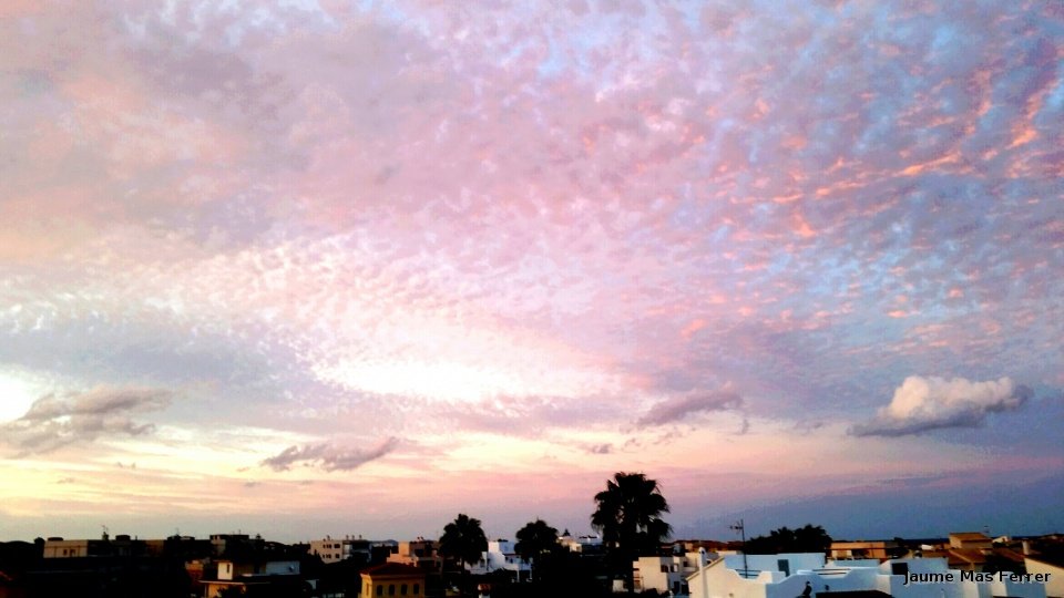 Altocumulos Floccus durante una puesta de Sol en Portocolom. Dia 14-09-2015.