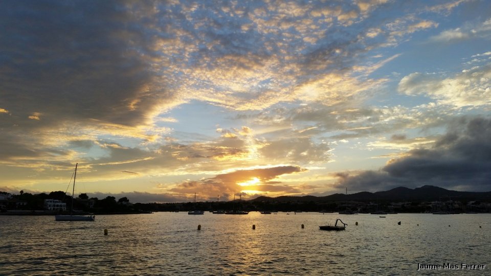 Puesta de Sol con nubes de tipo medio "Altocumulos Floccus". S´Arenal de Portocolom. Dia 13-10-2015.