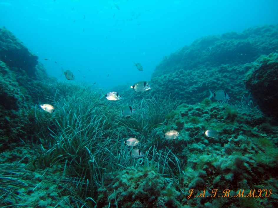 Bienvenido / Fotografias Submarinas / Fotografías Submarinas de Juan A. Torres / POSIDONIA Y GRUPO DE MOJARRAS