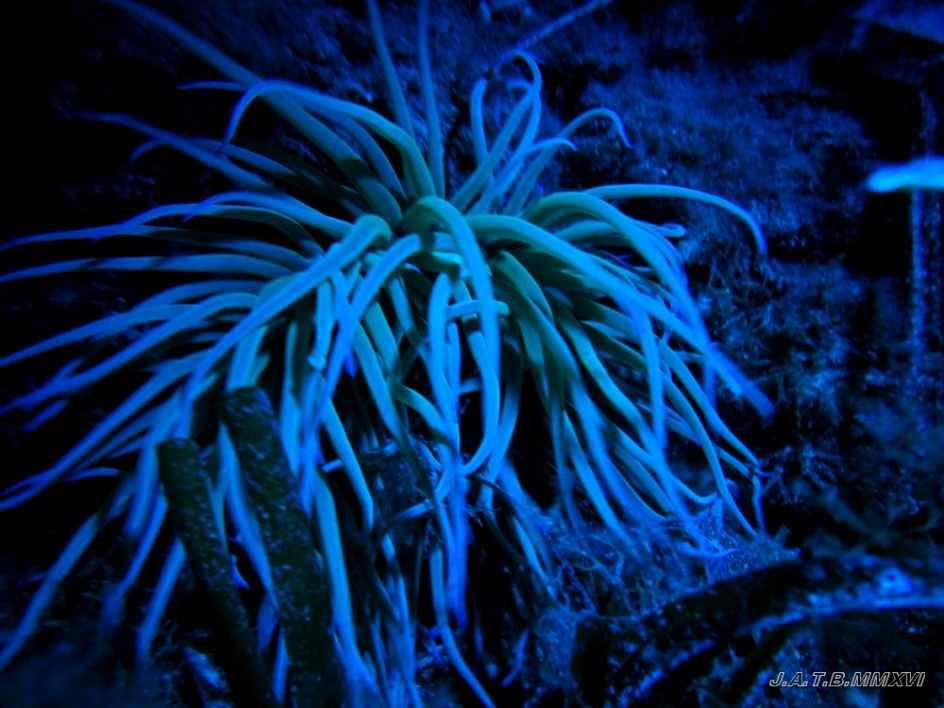 Bienvenido / Fotografias Submarinas / Fotografías Submarinas de Juan A. Torres / ANEMONA CON LUZ ULTRAVIOLETA