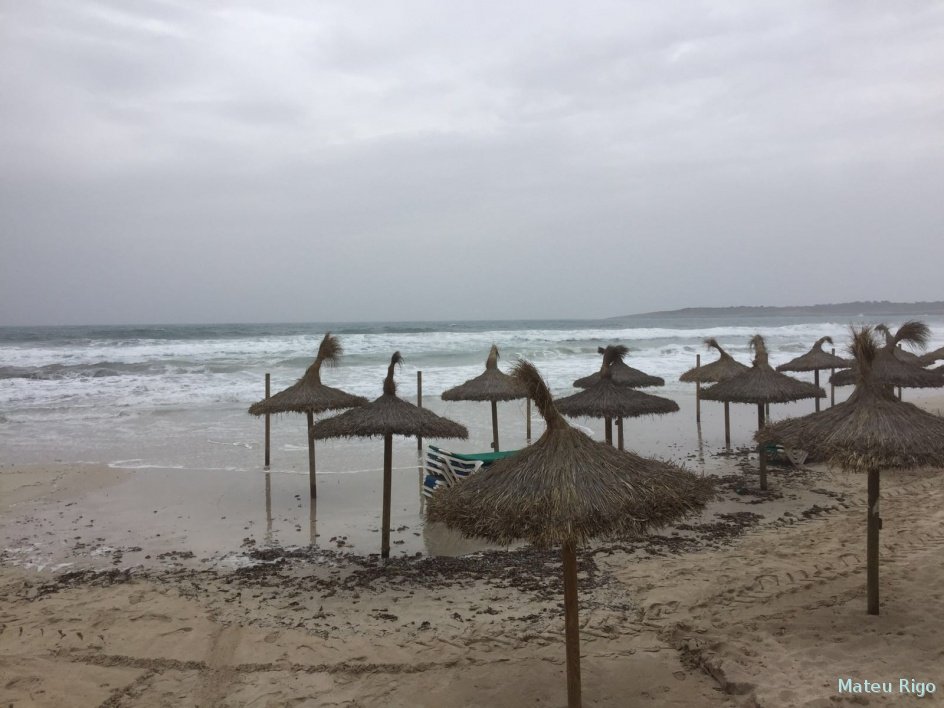temporal de Levante desde Cala Millor, las olas entrando playa a dentro. 09-05-2016.