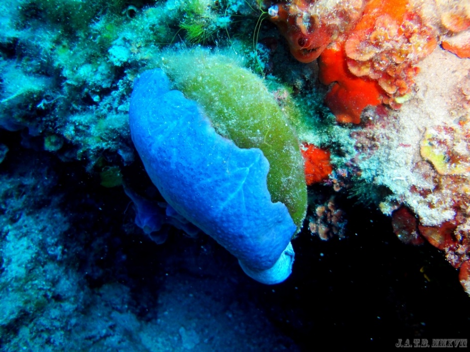 Bienvenido / Fotografias Submarinas / Fotografías Submarinas de Juan A. Torres / ESPONJA AZUL sobre ALGA