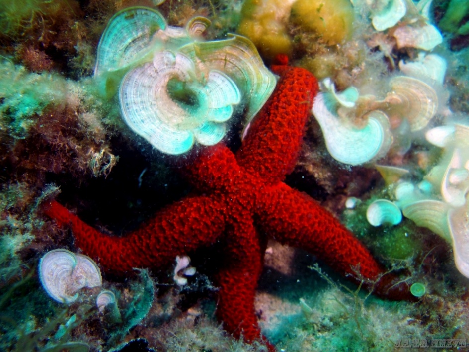 Bienvenido / Fotografias Submarinas / Fotografías Submarinas de Juan A. Torres / ESTRELLA ROJA Y ALGA PADINA PAVONICA