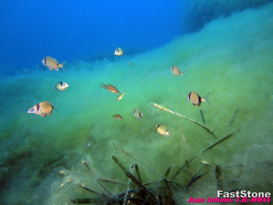 Como cada año al aumentar la temperatura del agua y con un exceso de nutrientes químicos se produce una invasión de algas filamentosas que cubren el fondo en su totalidad hasta una profundidad de 22,00m, dando una tonalidad monocromática amarilla.