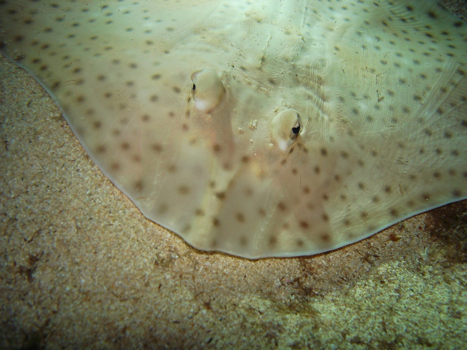 Bienvenido / Fotografias Submarinas / Fotografías Submarinas de Juan A. Torres / DETALLE DE LA CABEZA DE UNA RAYA CLAVEL