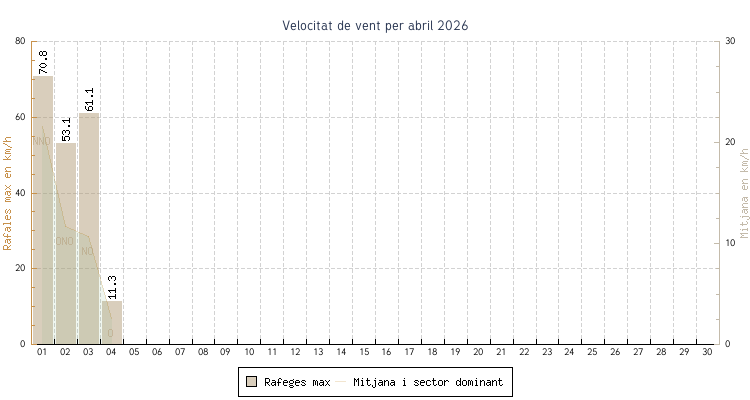 | min | max | mitjana | Velocitat (rafages) | Sector | ||